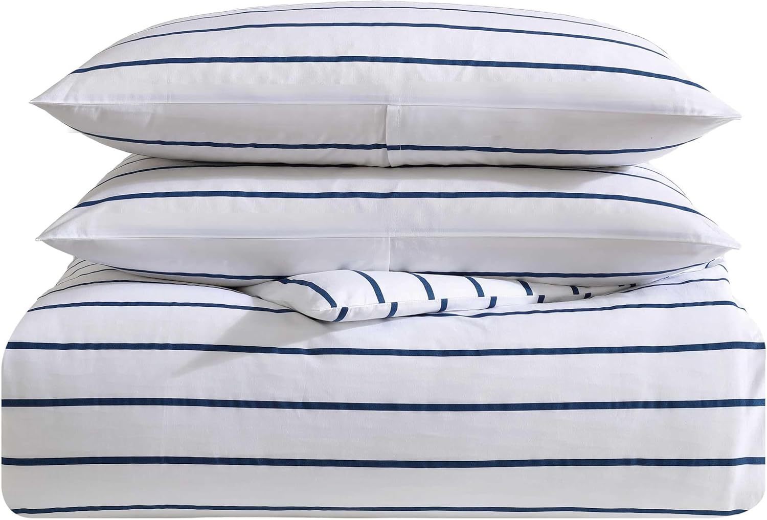 Easily update your bedroom space with Nautica's woodblock fish duvet cover set. The classic, everyday print features fish motifs neatly stacked in shades of fresh blue on a white ground. Love this pattern? Nautica also has made it available in a printed sheet set- all sold separately. The duvet cover and shams are constructed of 100% cotton and made with a percale weave for a crisp feel. It is single ply woven to be lightweight yet durable. A perfect bedroom staple for any transitional period plus ideal for layering. Insert not included. Each duvet cover set is machine washable which makes it easy to care for.